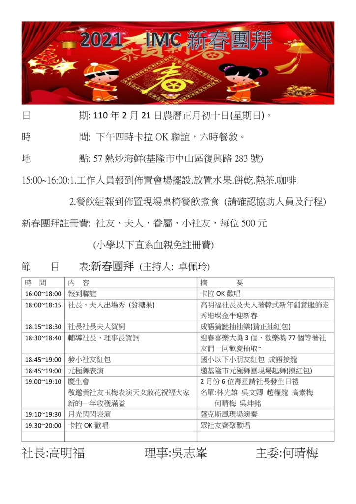 20210221新春團拜 By 小編|2021-03-04T16:15:15+08:004 3 月, 2021|最新消息, 活動訊息|在〈20210221新春團拜〉中留言功能已關閉 請選擇您想分享文章的平台! FacebookXRedditLinkedInWhatsAppTumblrPinterestVkXingEmail: